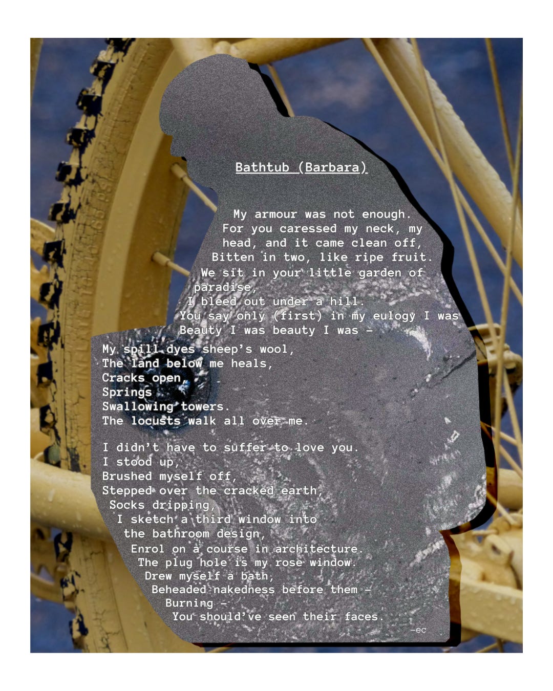 To redeem them anachronistically from predetermined tragedy, this piece considers the saints as an allegory for reclaiming authentic personal expressions of deconstructed faith, from religious structures which traditionally glorify (particularly female) suffering.